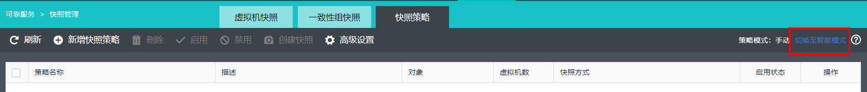 To switch the mode, click Switch to Smart Mode on the Snapshot Policy tab.