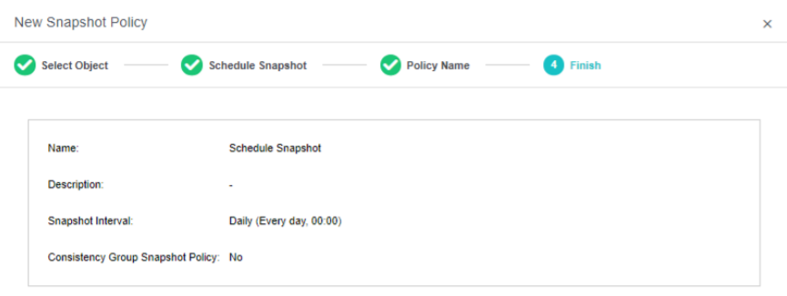 - Configure basic information and confirm it. The snapshot policy is created successfully.