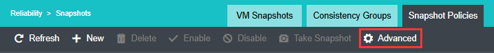 - To modify the storage-based snapshot policy, click Advanced on the Snapshot Policy tab.