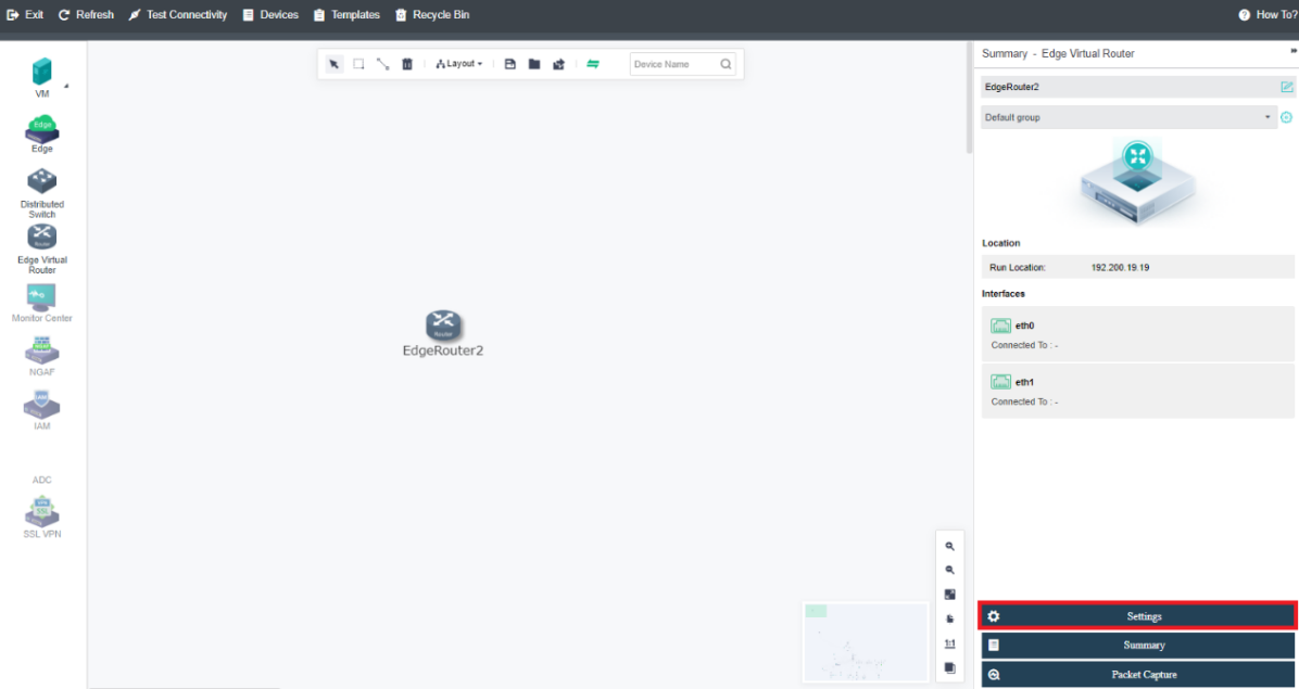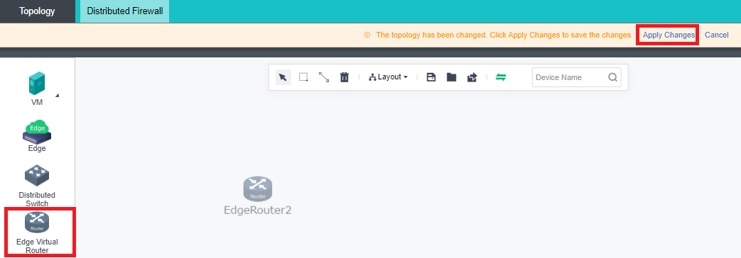Drag the Edge Virtual Router from the left to the network topology, and click Apply Changes.