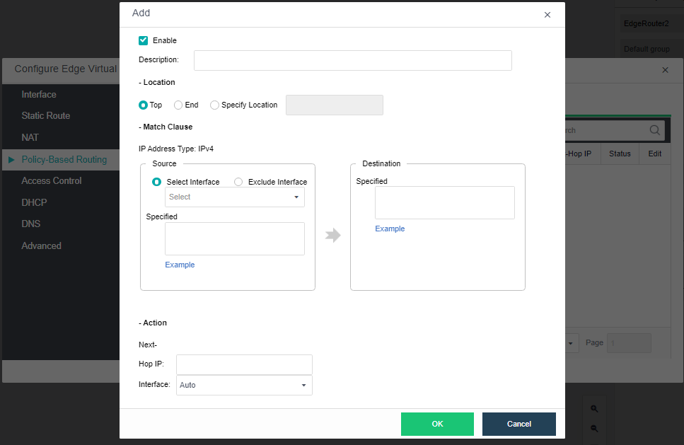 Click New under the Policy Based Routing tab to configure PBR, which supports IPv4 and IPv6.