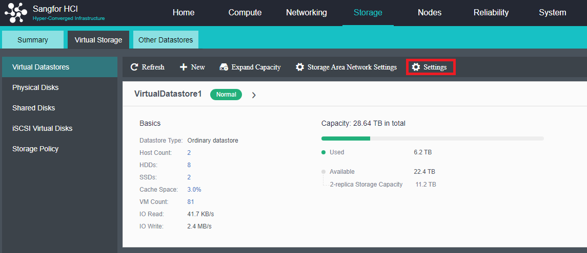 Take the data with a two-copy policy as an example: When components (disk or node) in a virtual datastore suffer a physical fault, another copy of the data is stored on other components to ensure normal reading and writing of the virtual machine. As a result, the redundancy of the virtual datastore is reduced, leading to data loss if the component storing the other copy breaks down. With data rebuilding, when a component breaks down, the other copy of the data on the faulted component will be used as the recovery source to rebuild a new copy on the target component in fragments to recover the completeness of the copy and realize system self-recovery.