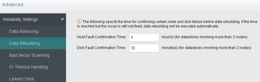 Select Data Rebuilding, and configure the wait time for host rebuild and disk rebuild.