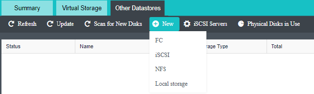 Navigate to Storage > Other Datastore, click New and click NFS.