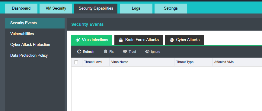Go to Security Capabilities > Security Events > Viruses. Then, you can select an action on the target virus, which can be Fix, Trust, or Ignore.