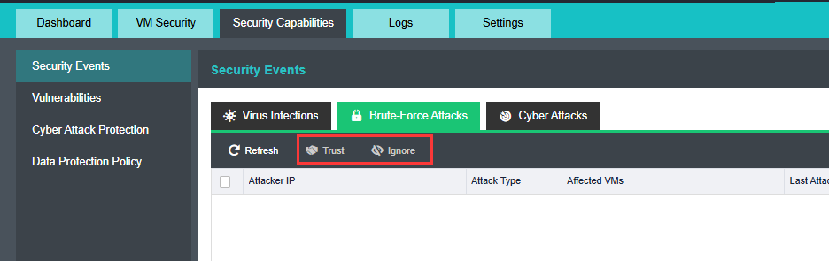 Go to Security Capabilities > Security Events > Brute-Force Attacks and click Block, Trust, or Ignore.