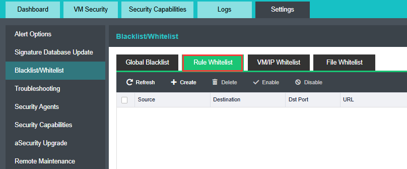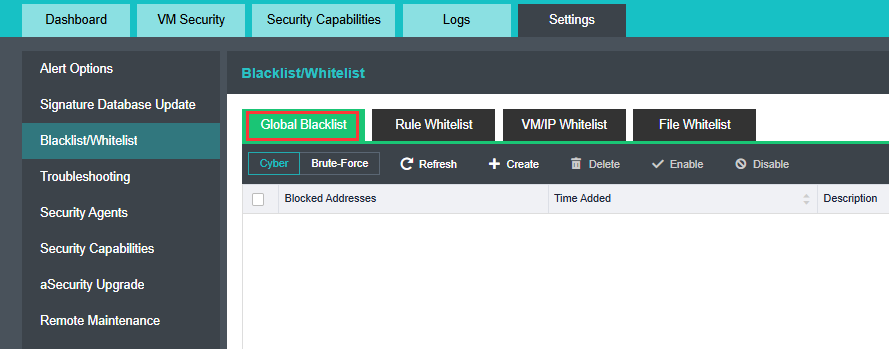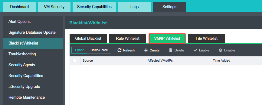 aSecurity supports blacklist management for attack protection or brute-force attack events and whitelist management for IP addresses, VMs, security policies, or threat events.