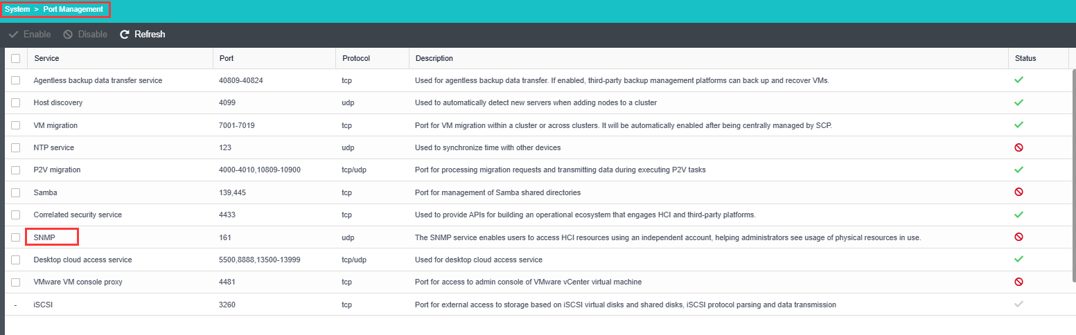 Go to System > Port Management and enable the SNMP service.