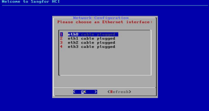 After the system is installed, select the NIC as prompted and select OK. Then, press Enter to go to the settings page.