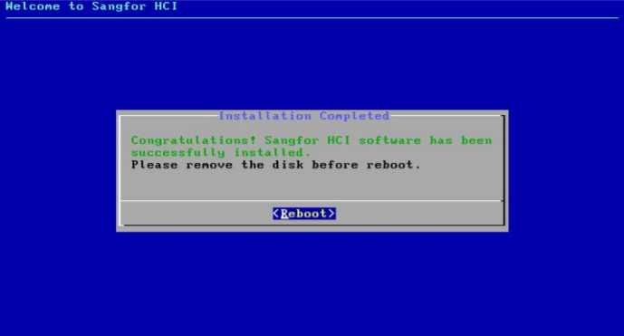 Remove the USB flash drive or ISO image file and select Reboot to complete installation.