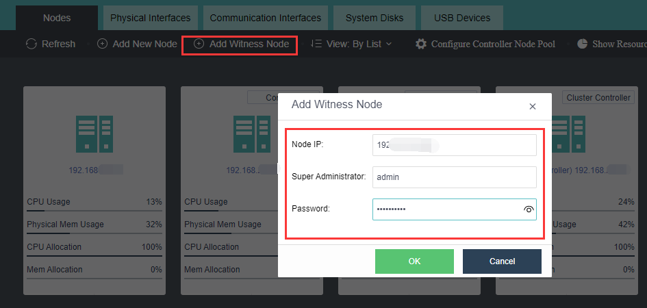 Go to Nodes > Nodes > Add Witness Node. Add the witness device to the cluster.