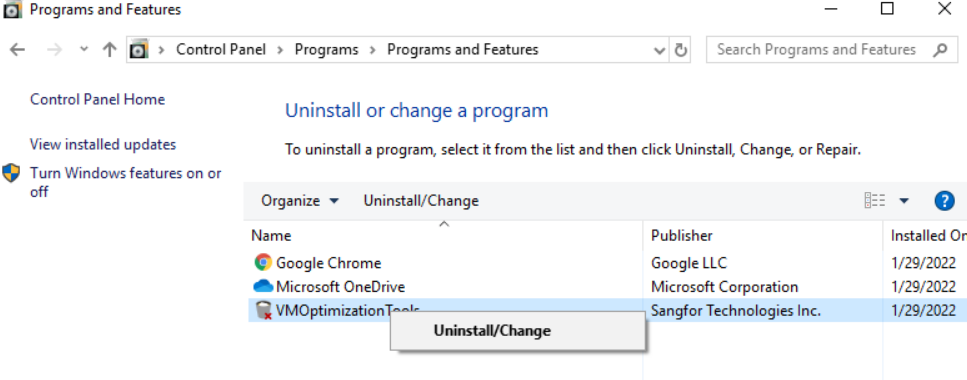 It must be uninstalled in the control panel. It is forbidden to uninstall with third-party tools.