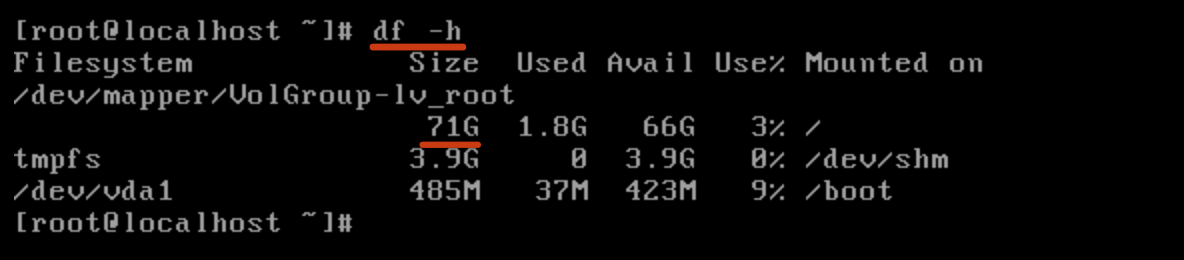 View the lv size after capacity expansion: You can see the LV size after capacity expansion through the DF command. The capacity expansion is completed.
