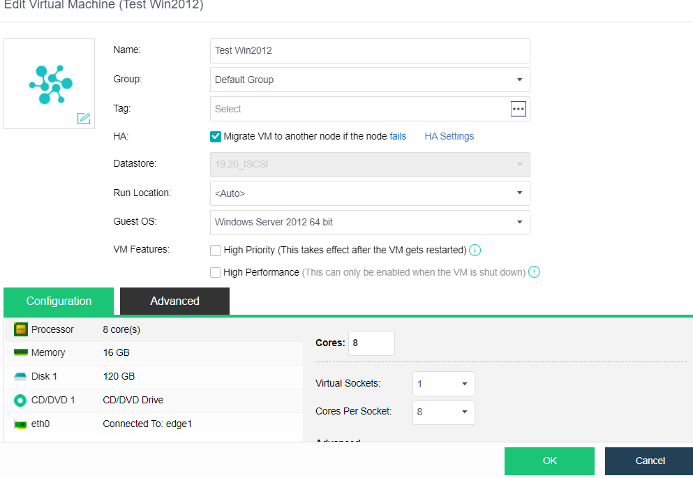 - The following information can be edited on the Edit Virtual Machine page. For more information, refer to Chapter 5.1.1 Create A New Virtual Machine in this manual.