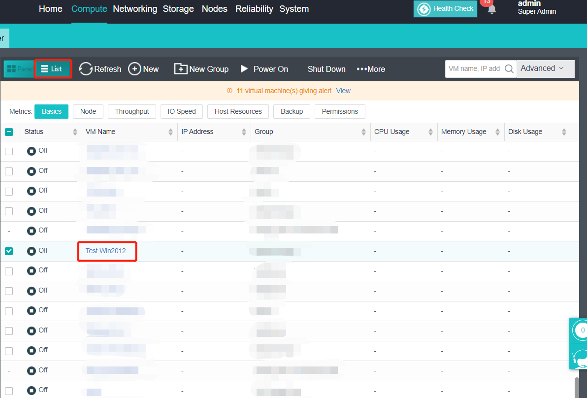 - Click the virtual machine name in the virtual machine list on the Compute page to enter the virtual machine information page.
