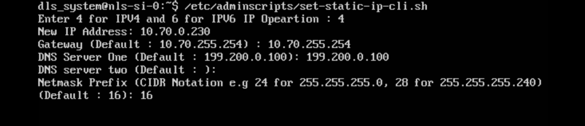 Run the /etc/adminscripts/set-static-ip-cli.sh command to specify the static IP address, as shown in the figure below.