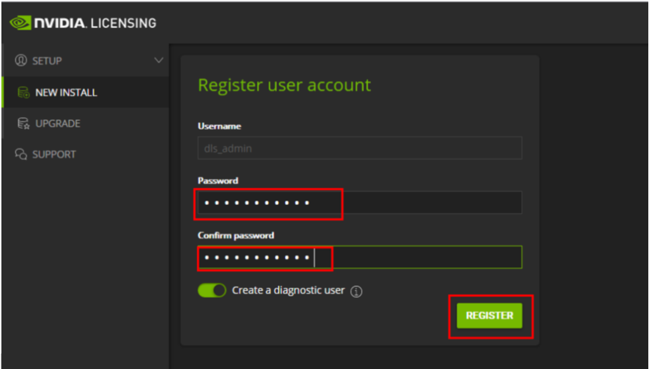 Set your password and click REGISTER.