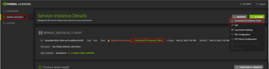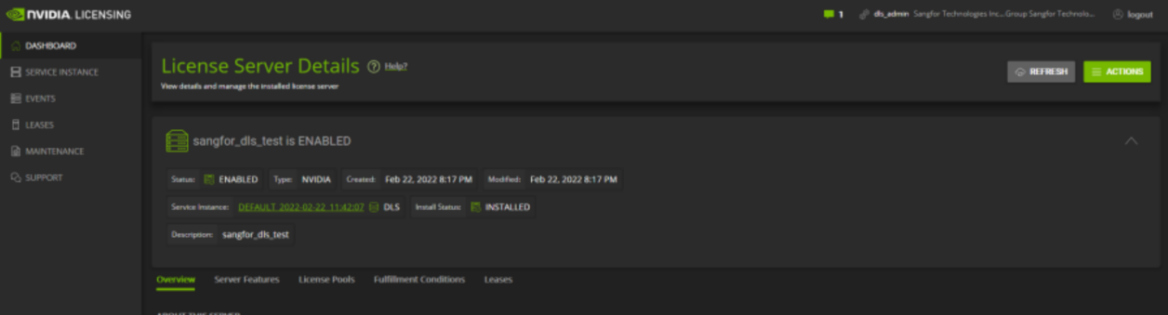 Go to SERVICE INSTANCE and click Download DLS Instance Token. To obtain the testing license, send the token file to a Sangfor technical support representative.