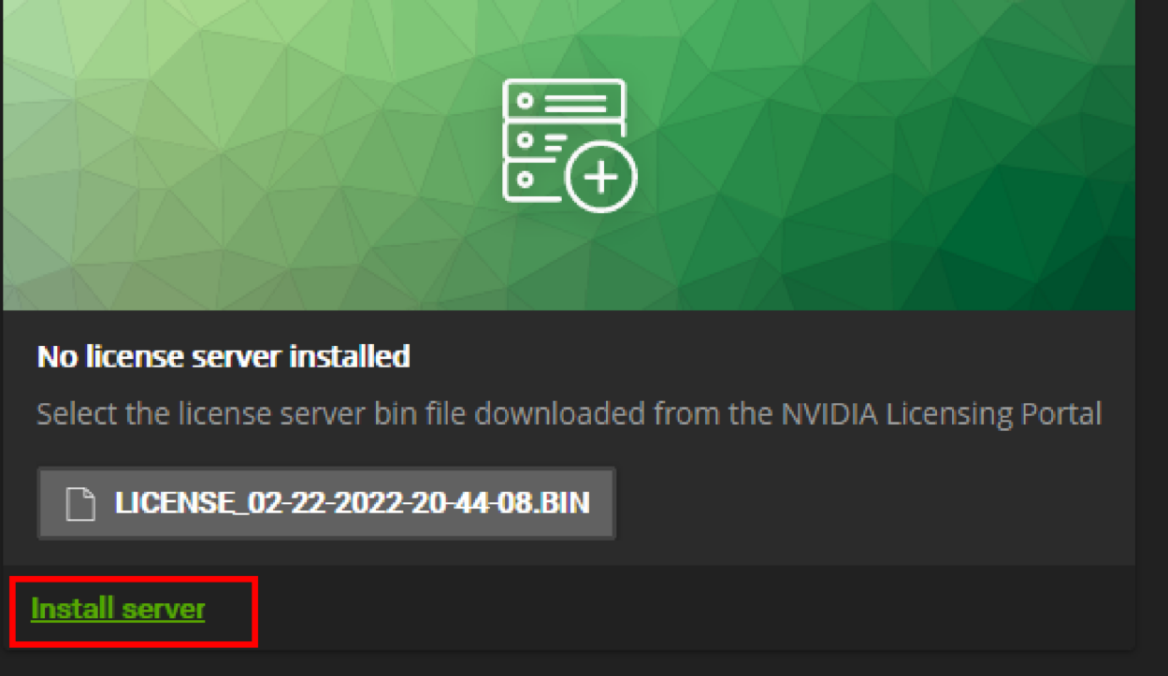 Click Install server and configure the licensing server.