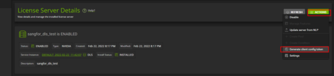 On the License Server Details page, click Generate client config token to license the GPU-supported VM.