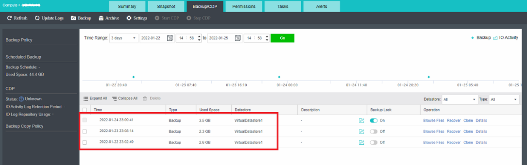 You can view the created backup information in the VM Backup&CDP Policy section.