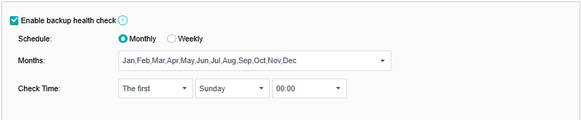 • Backup health checks check only the availability of the latest backup and consume computing resources and should be performed during off-peak hours. If the latest backup is found unavailable, a full backup will be created instead.