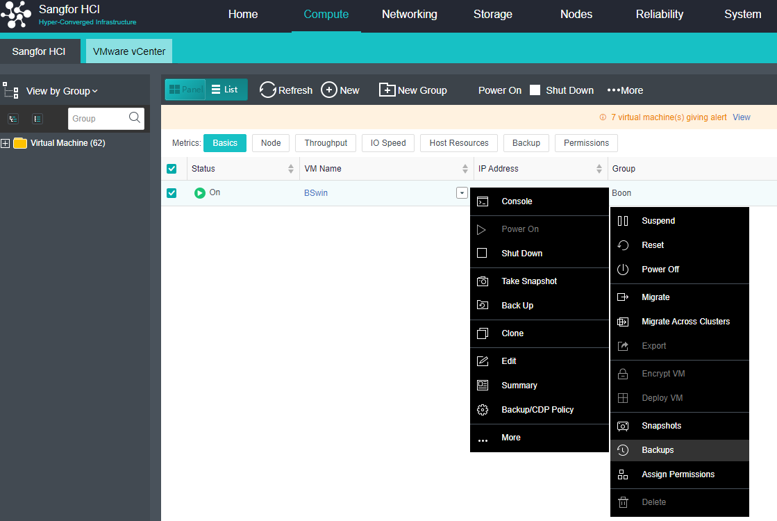 After a VM (either newly created or overwritten) is recovered, its disk provisioning mode changes to thin provisioning, which will compromise performance. You can go to Compute > List, select the VM, go to More > Edit, click Disk, and then select Pre-allocating for Allocation.