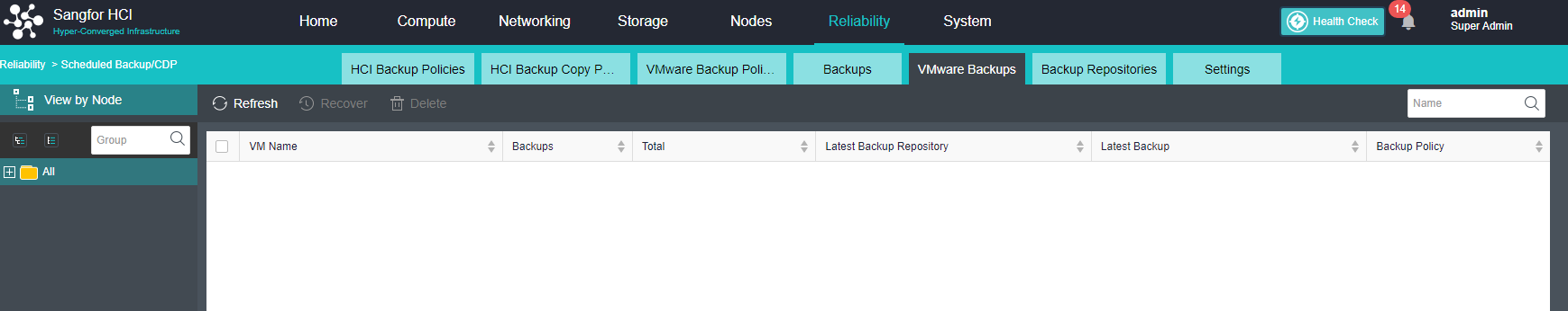 Navigate to Reliability > Scheduled Backup/CDP > VMware Backups.