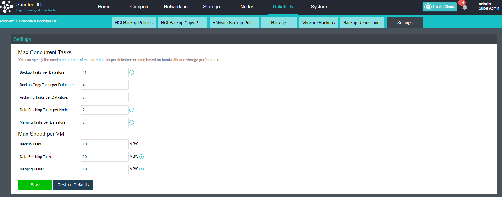 • Backup Tasks: Limit the maximum backup speed during virtual machine backup.