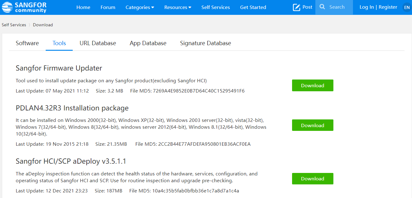Go to Self Service > Download > Tools and click download on Sangfor HCI/SCP aDeploy.