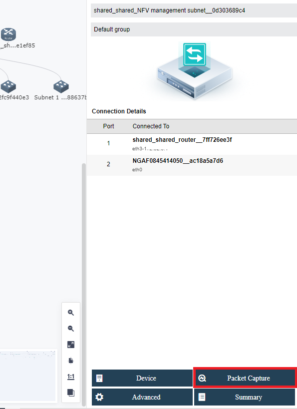 Log in to the HCI console, navigate to Networking > Topology page, select the device that needs to capture packets, and click Packet Capture.