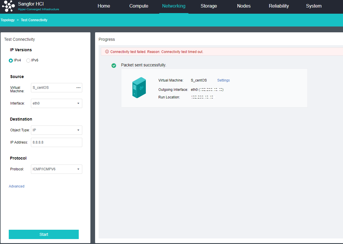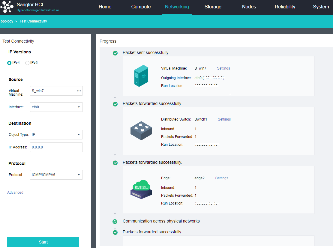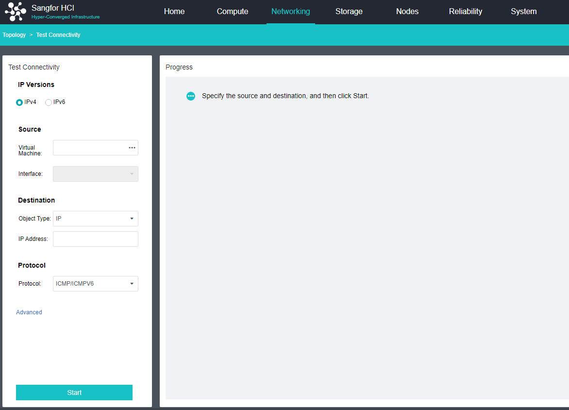 Navigate to Network > Topology, and click Test Connectivity to enter the Test Connectivity page.