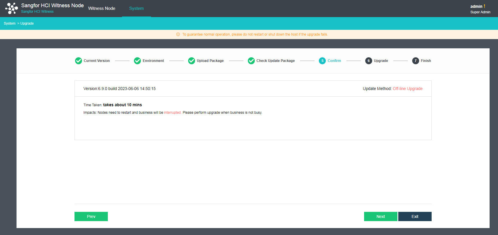 Please upgrade the witness node before upgrading the stretched cluster or "2+1" cluster environment (skip the following steps if the HCI cluster is non-stretched).
