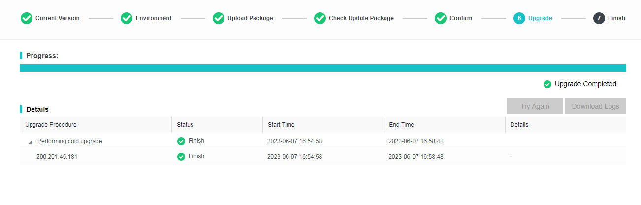 The upgrade progress is shown in the figure below.