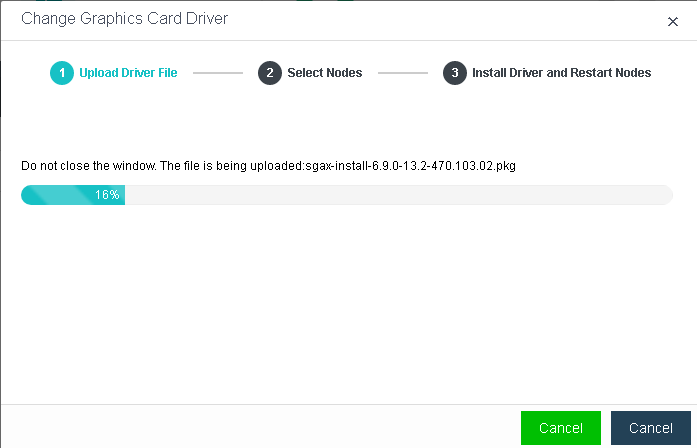 Select nodes where you want to install the driver and wait for the driver file to be distributed.
